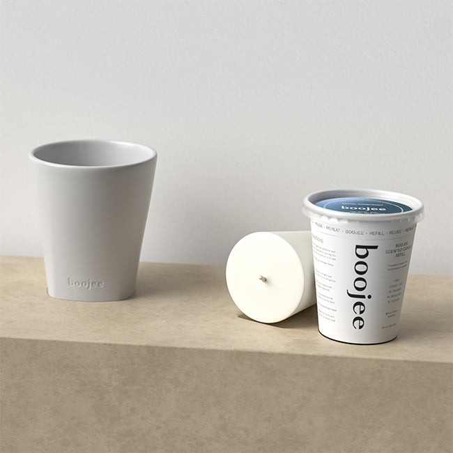 Remove the candle refill from the cup container and place into a Boojee vessel before burning.