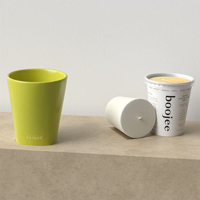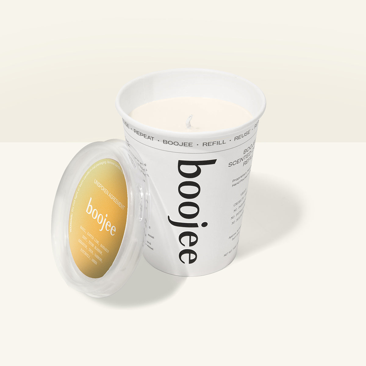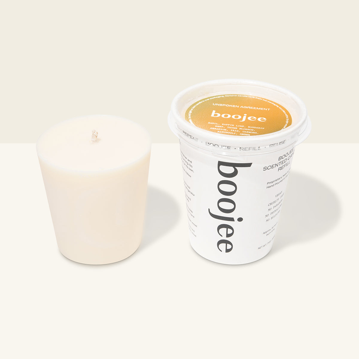 Remove the candle refill from the cup container and place into a Boojee vessel before burning.